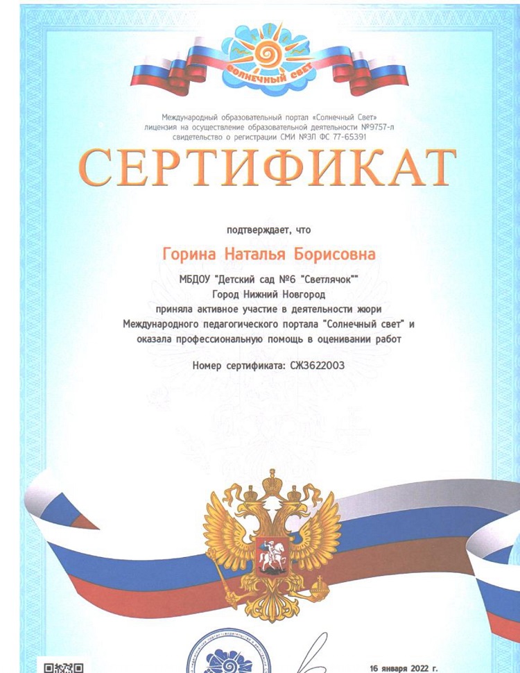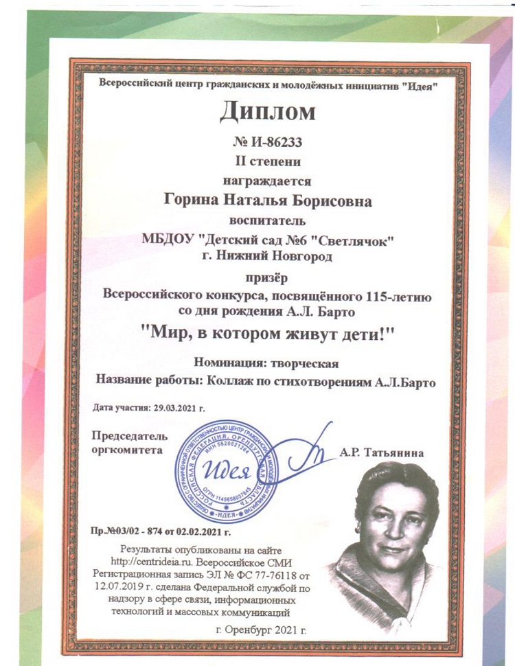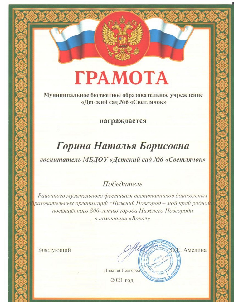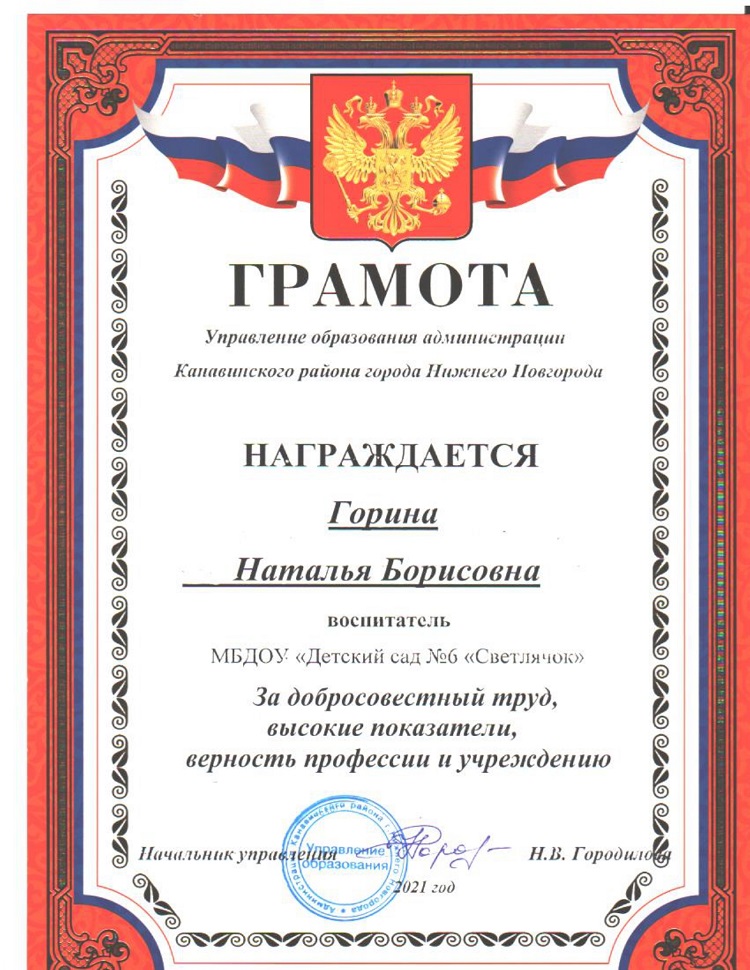 Горина Наталья Борисовна - воспитатель